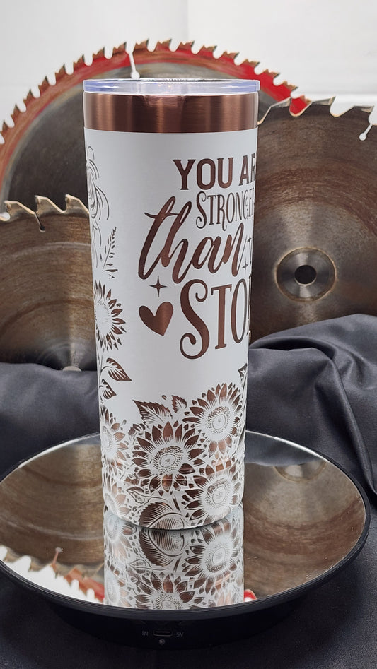 22oz Polar Camel Skinny Tumbler – White with Rose Gold Engraved "Stronger Than the Storm" Design