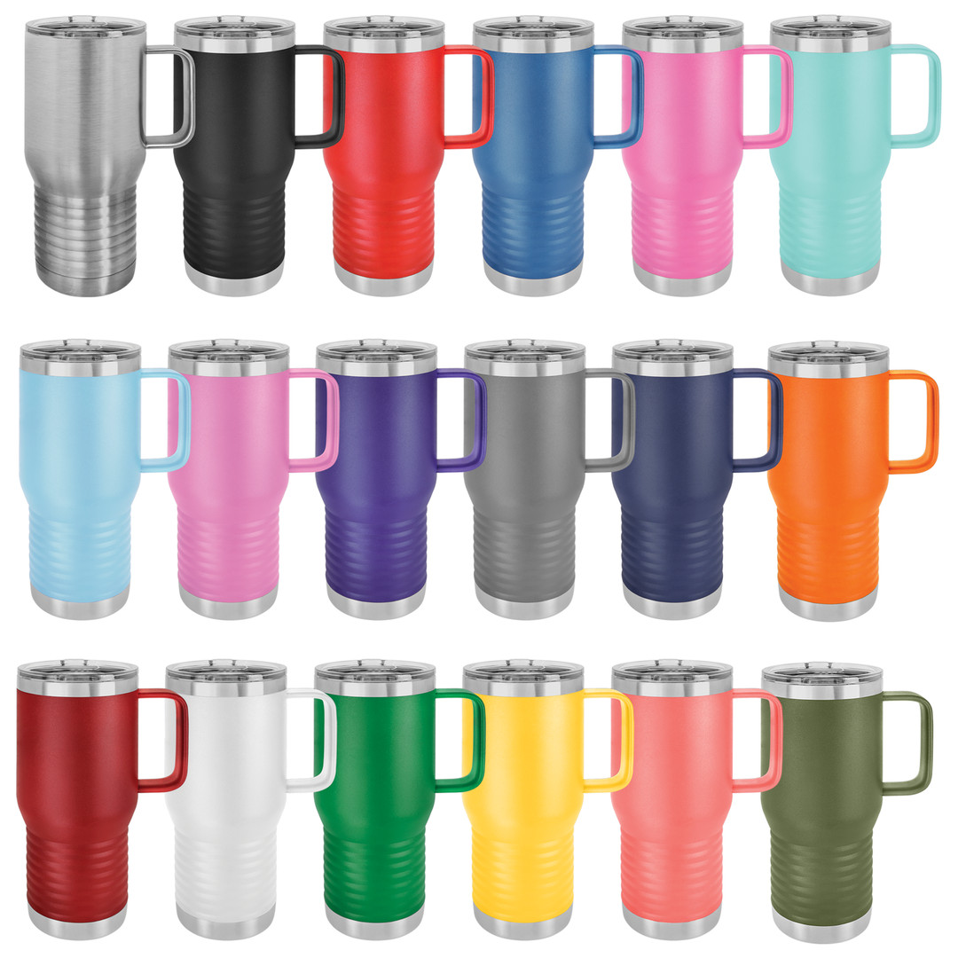 Optimize your coffee-drinking routine with the 20oz Travel Mug from Polar Camel. Capable of maintaining hot temperatures for 8 hours and cold for 24, this mug comes in 17 vivid colors. Its ergonomic handle and leak-proof lid make it an ideal option for customization and corporate giveaways. Get the most out of every sip with this essential mug that fits in cup holders and is perfect for all your travels.