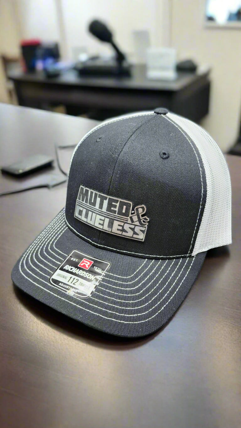 Introducing the Richardson 112 Muted and Clueless hat. Featuring a sleek black and white colorway, this hat is made with stainless steel and black acrylic patch design. Its unique streamer inspired design adds a touch of style to any outfit. Elevate your look with this must-have accessory.